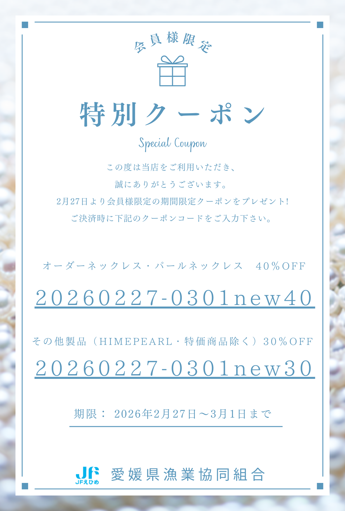 発行を行います。えひめ真珠サイト内でもお得にお買い物をお楽しみください。